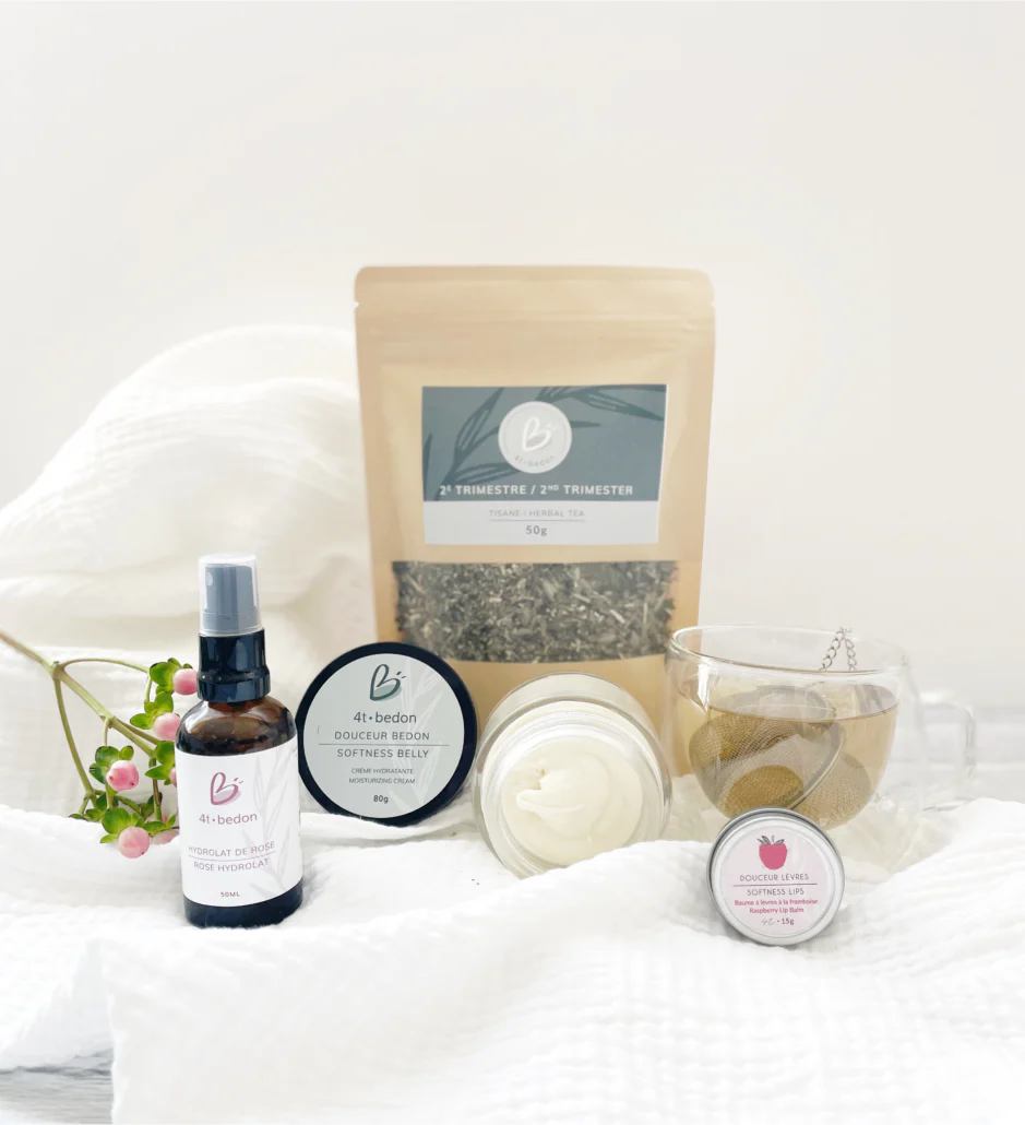 Composé à 100% d’ingrédients actifs naturels, notre Douceur Bedon nourrira et assouplira votre peau en douceur en prévision de son expansion. Avec notre Huile de massage Petits Pieds, vos pieds fatigués seront choyés grâce à ses propriétés favorisant la circulation sanguine. Choisissez une tisane adaptée à chaque trimestre de votre grossesse et dégustez une boisson délicieuse qui répondra aux besoins spécifiques de chaque étape de votre grossesse. Enfin, notre Hydrolat de rose biologique apaisera votre corps et votre esprit tout en tonifiant et régénérant votre peau. Offrez-vous une grossesse sereine avec notre mini-coffret Douceurs pour la future maman !