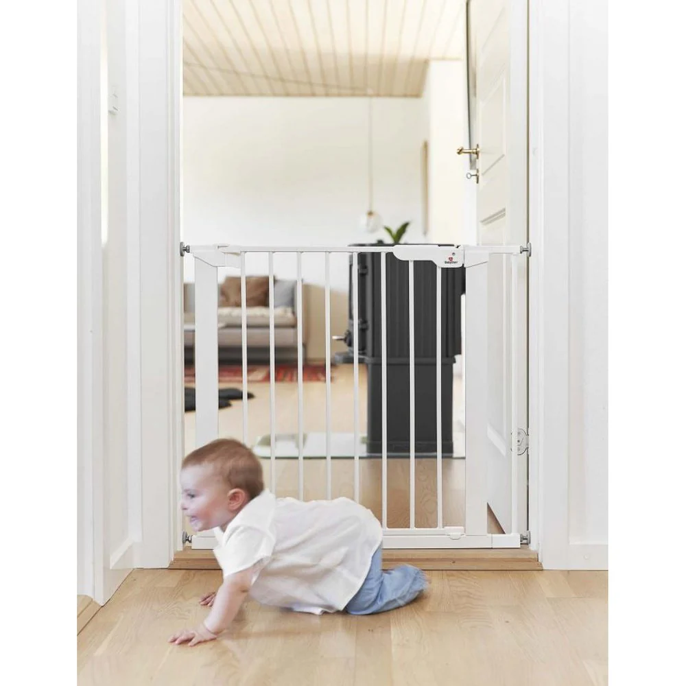 BabyDan Asta Barrière de Porte/Escalier avec Extensions – Blanc | Système de Serrage (sans perçage)
