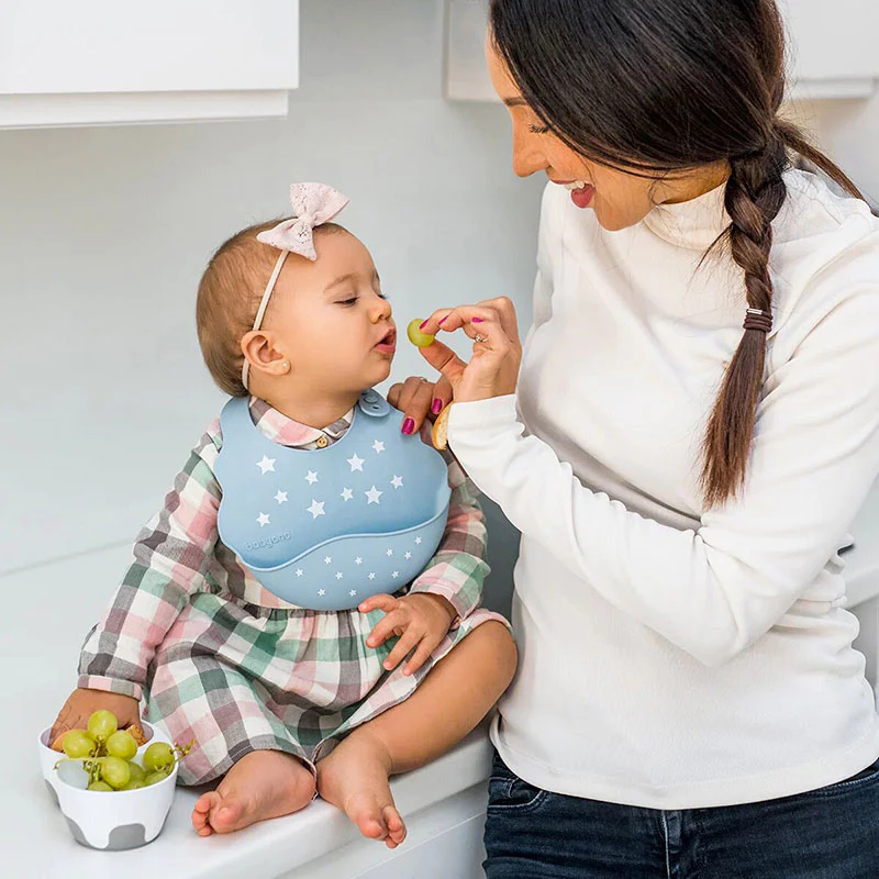 Le bavoir doux et délicat protégera efficacement les vêtements de votre bébé de la saleté en mangeant. Il dispose d’une poche pratique qui empêche les aliments de tomber. Le bavoir est fait d’un matériau doux, léger et sûr. Il est facile à nettoyer et passe au lave-vaisselle. Il est flexible, ce qui lui permet d’être facilement plié en un petit cube, idéal à ranger ou à placer dans le sac à langer.