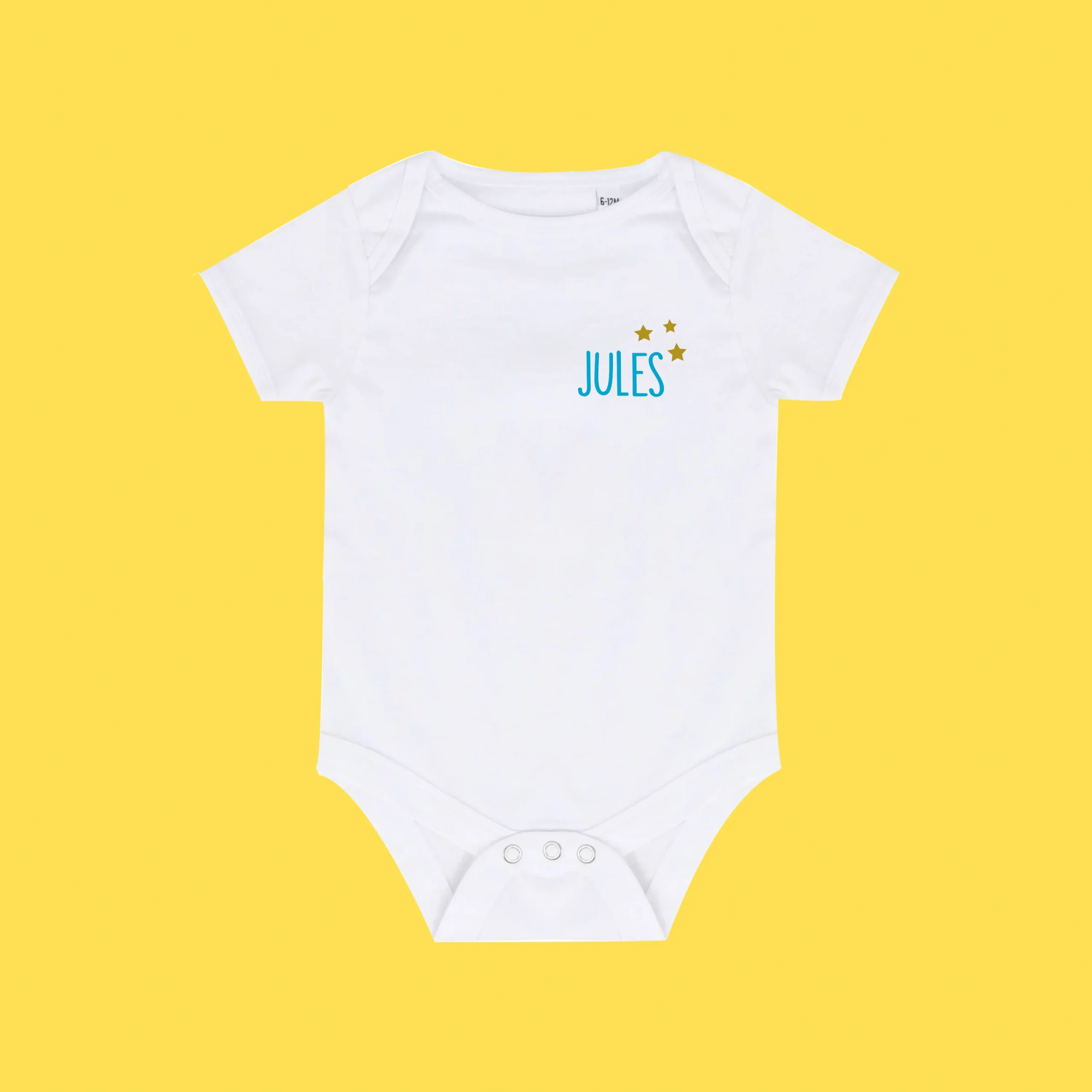 Un body pour les tout-petits et les toutes petites. Manches longues ou manches courtes. Son prénom est le plus beau, votre bébé peut le montrer grâce à son body personnalisé. Il ne vous reste plus qu’à donner son nom.