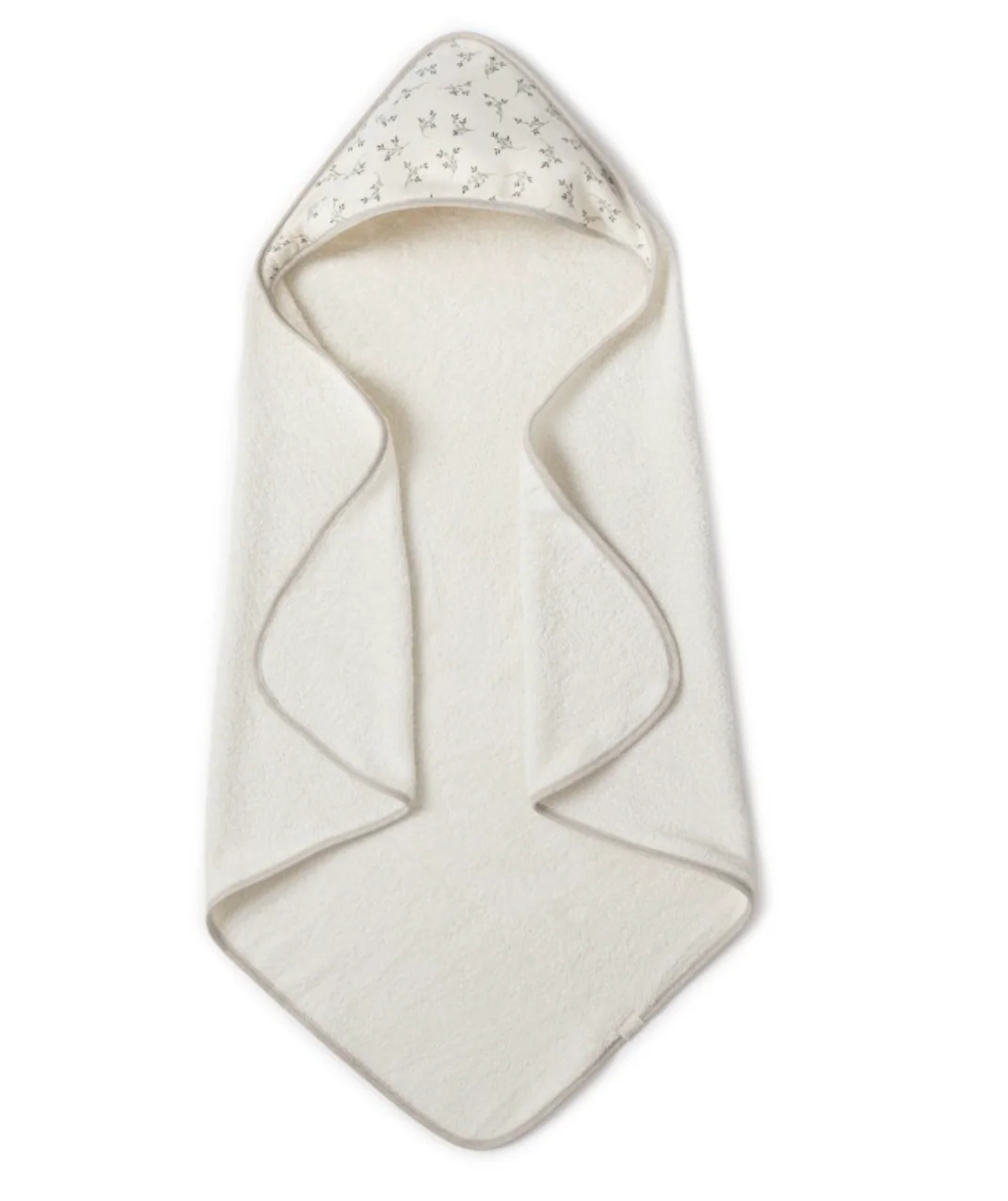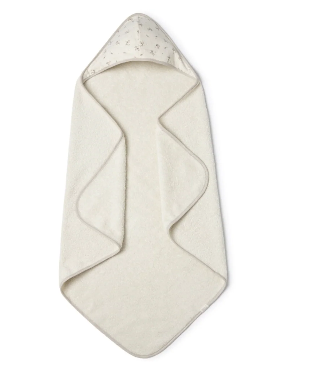 Serviette pour la sortie de bain avec capuche en éponge coton moelleux. CARACTERISTIQUES: Apte pour nouveau né MESURES: 75 x 75 cm. COMPOSITION: 100% coton oeko-tex