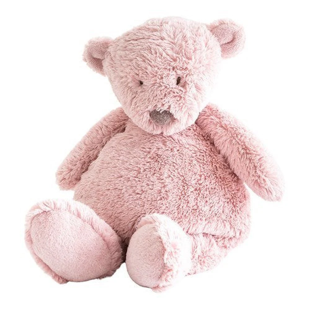 Noann l’ourson Peluche avec un ventre doux à utiliser comme doudou. Couleur : rose Taille : 30 cm assis