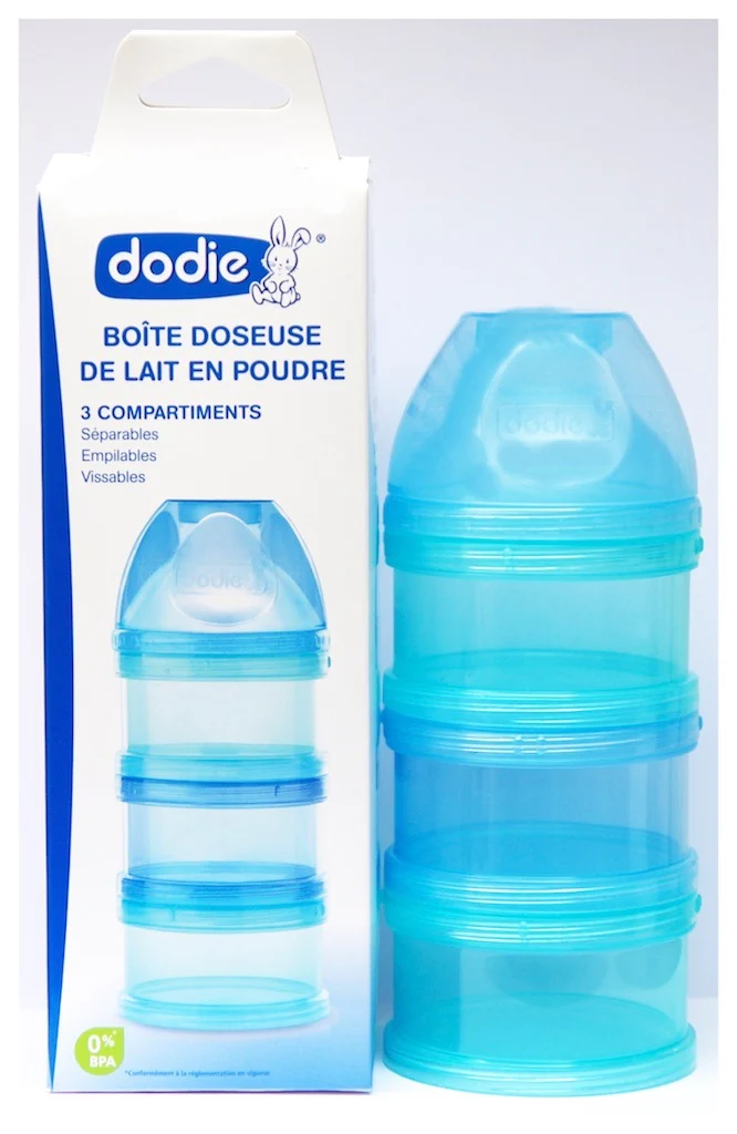 MARQUE : DODIE L’accessoire indispensable pour les sorties et voyages, pour transporter la juste dose de lait, prête-à-l’emploi. Capuchon ergonomique et facile à visser Bec verseur amovible et vissable, pour faciliter le remplissage et le versement Laver et stériliser toutes les pièces avant la première utilisation.