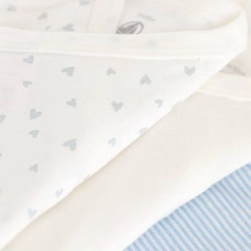 Ensemble de 3 Bodies en Coton à Manches Courtes – Cœurs/Rayures/Bleu