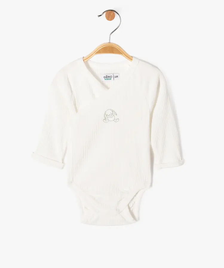 MARQUE : GÉMO Cet ensemble évolutif pour bébé fille est aussi astucieux que charmant. Composé de trois pièces en coton côtelé, il comprend un body croisé, un pantalon en maille et un bonnet. Conçu pour s’adapter à la croissance des nourrissons, le body est doté de manches ultra-longues à retrousser et d’une double rangée de […]