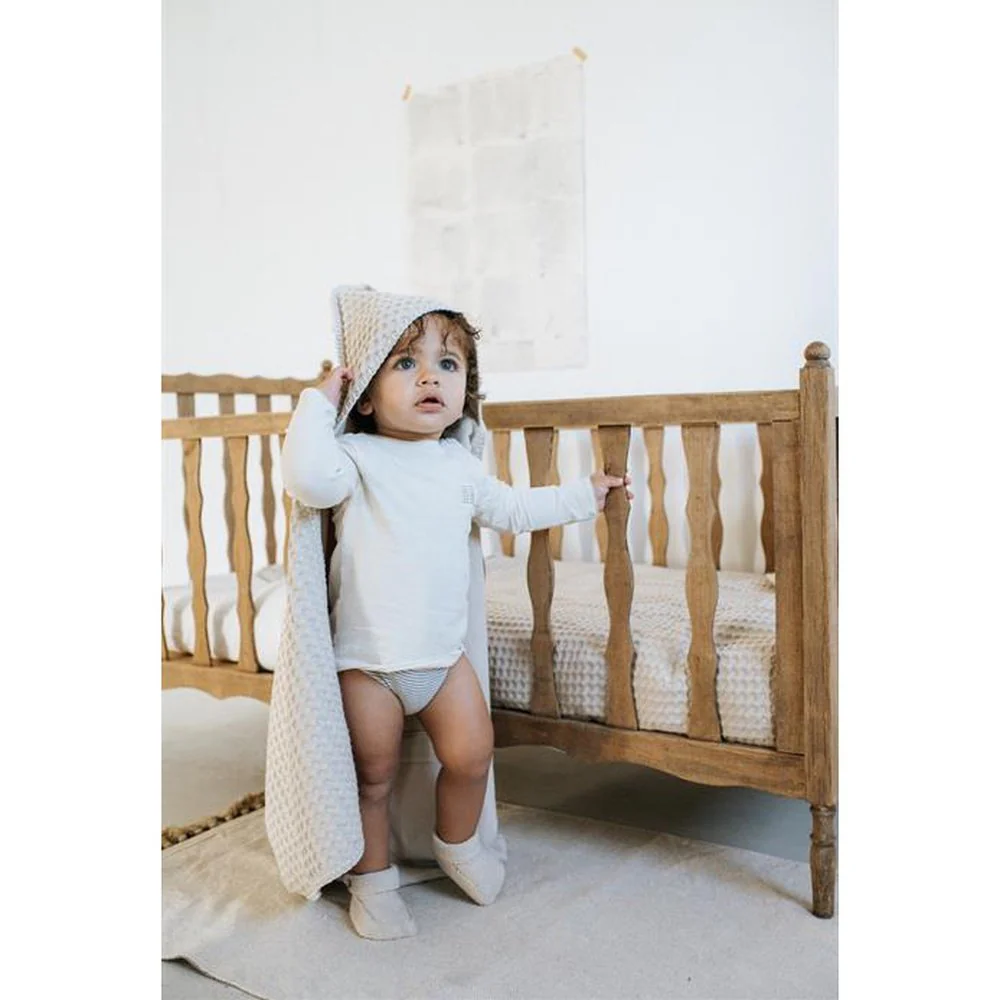 Le châle gaufré Koeka avec capuche est doublé de tissu éponge et vous pouvez l’utiliser pour envelopper votre bébé. Ce châle a une ouverture pour que le tissu puisse également être utilisé avec les ceintures du siège auto ou transat. De cette façon, votre tout-petit reste toujours confortablement au chaud, à la maison comme sur la route. L’écharpe est également agréable à utiliser pendant l’allaitement et grâce à la doublure en tissu éponge, vous pouvez également utiliser ce tissu pour sécher votre tout-petit après le bain. Avec la boucle de suspension, le chiffon est toujours à portée de main dans la salle de bain ou la chambre de bébé. Apportez également votre châle avec vous au bureau de consultation; idéal si vous attendez toujours votre rendez-vous.