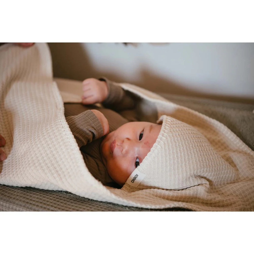 Cette Koeka couverture avec capuche de confortable jersey doux dans un mini exécution gaufre est doté de tissu éponge extensible et idéal pour envelsurper votre bébé pour un confort et une chaleur supplémentaires. La couverture est conçue avec une ouverture, afin qu’elle puisse également être utilisée avec le ceintures de siège auto, buggy de chaise à bascule peut être utilisé, afin que votre petit reste toujours confortablement au chaud, que ce soit à la maison ou en déplacement.