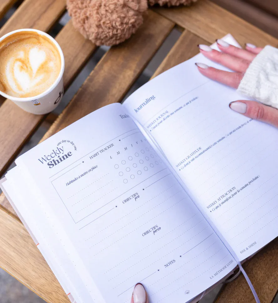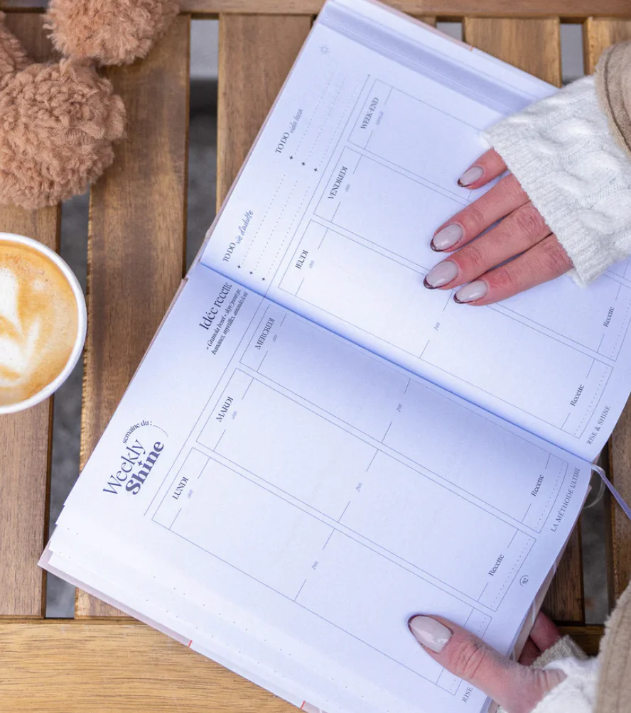 - WEEKLY SHINE : objectifs & planning de la semaine, idées recettes et organisation repas, habits tracker, journaling et visualisation