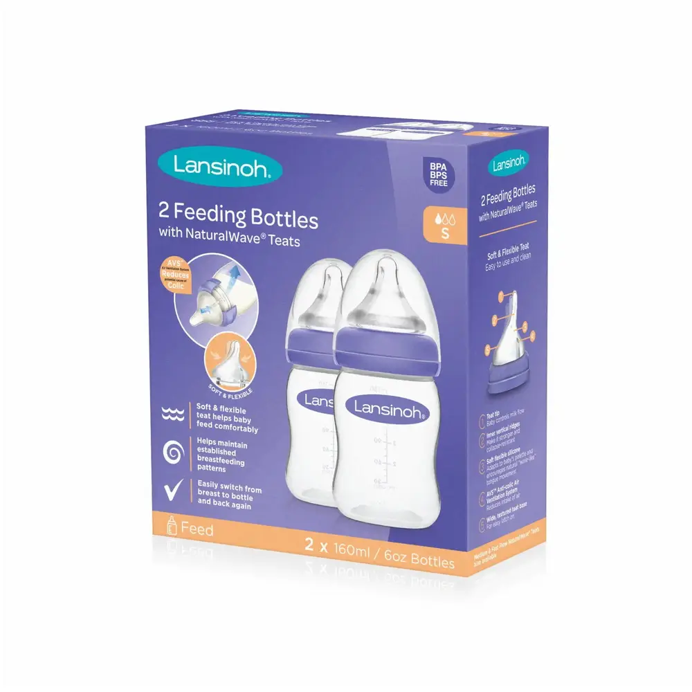 Lansinoh Biberons pour bébé Pack de 2 160ml – Avec tétine NaturalWave Flux lent – Sans BPA & Anti-coliques