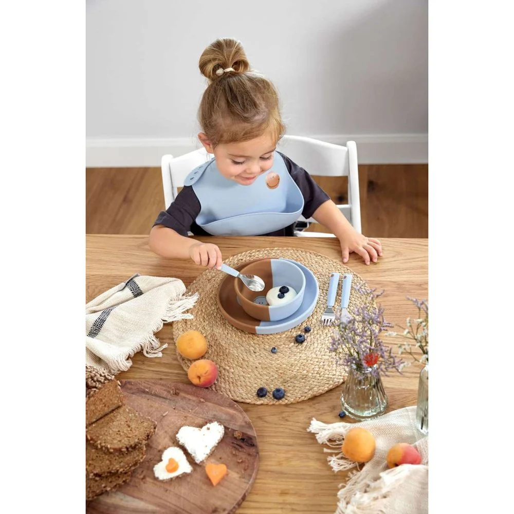 Lässig Assiette en silicone – Happy Rascals Smile bleu ciel