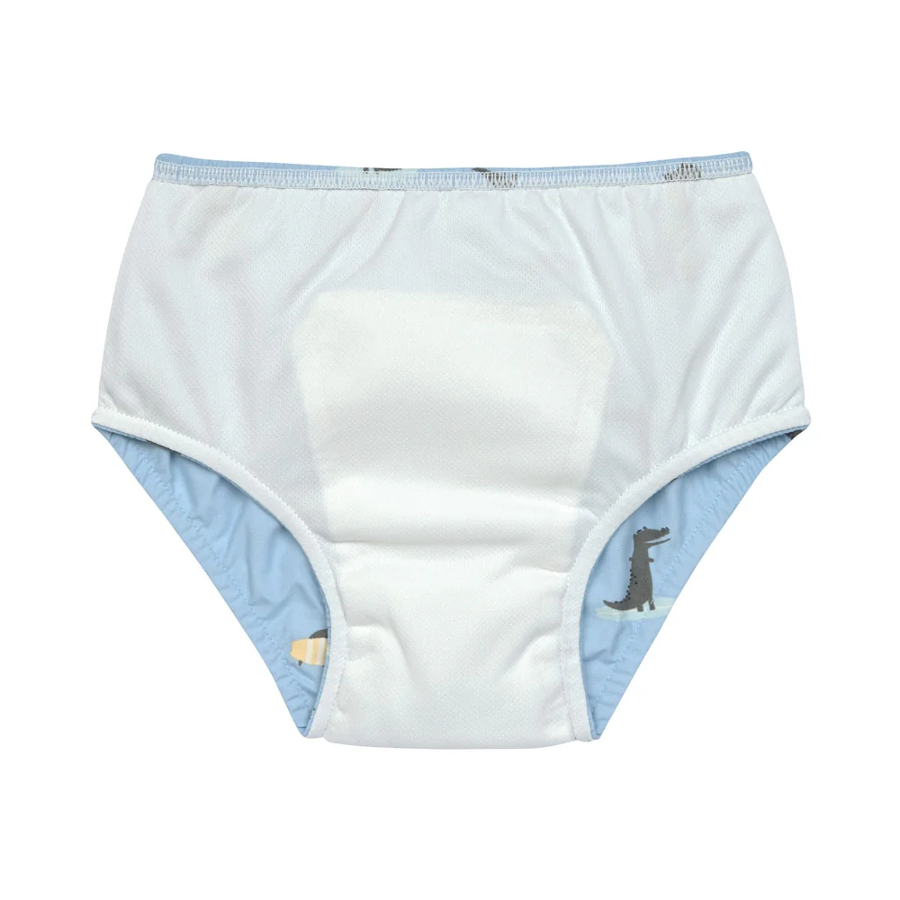 La couche de bain bleue pour bébé avec imprimé crocodile offre une belle alternative écologique aux couches jetables. La doublure absorbante garde la peau de l’enfant au sec et prévient les gros accidents dans l’eau. Convient de 3 mois à 3 ans.