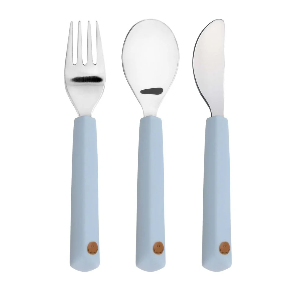 Lässig Couverts pour enfants avec poignée en silicone – Happy Rascals, Smile sky blue