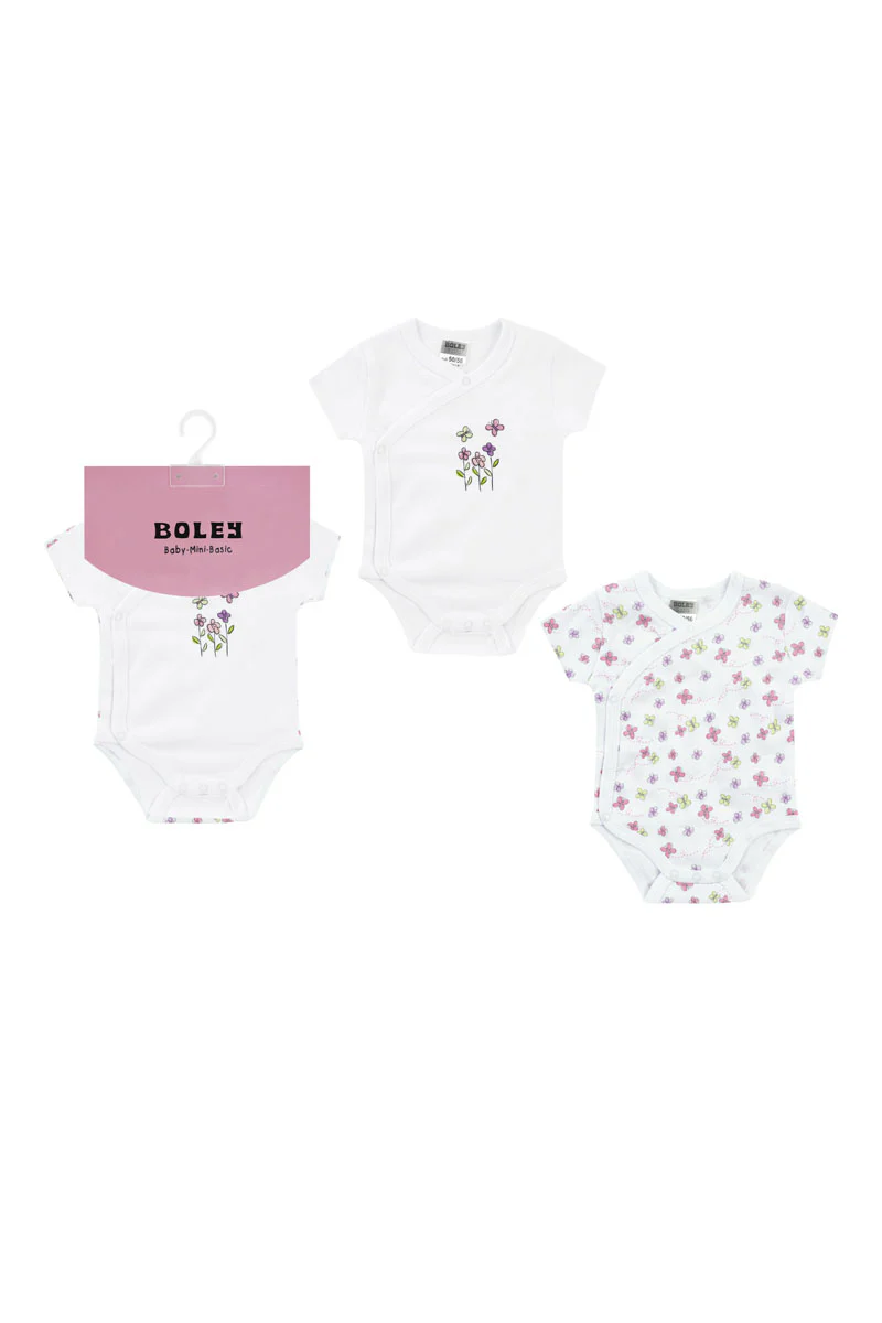 Lot de 2 bodys Kimono MC fleurs blanc/rose