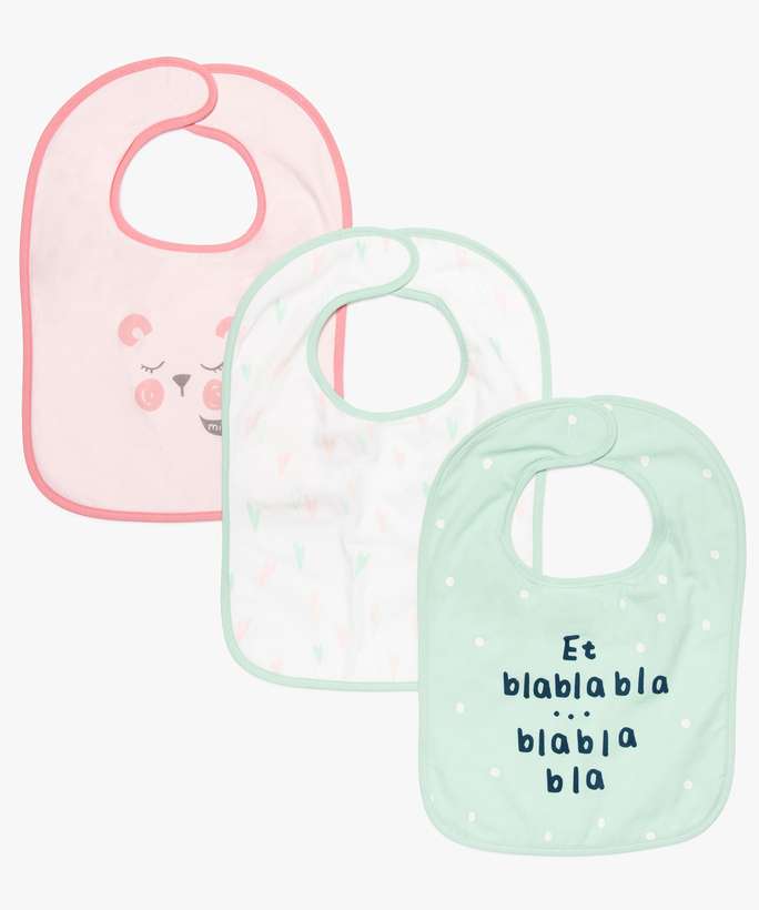 Lot de 3 bavoirs rose,blanc et vert d’eau