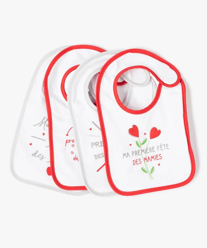 Lot de 4 Bavoirs à bébé en coton à motifs « Ma première fête »
