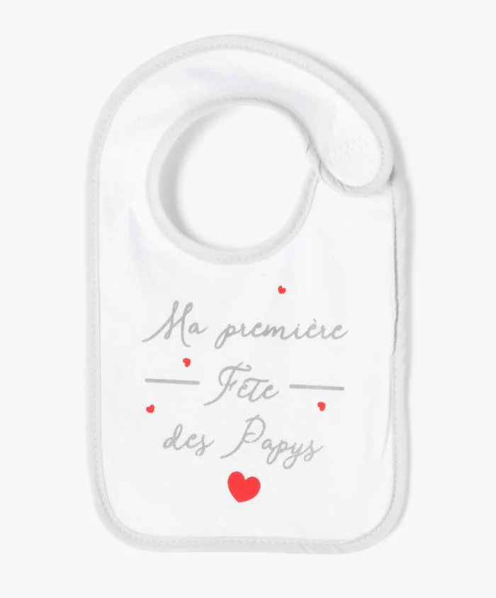 Tous les premiers moments de la vie de bébé sont de grandes occasions ! Fêtez-les sans gâcher la jolie tenue de votre bambin grâce à ce lot de 4 bavoirs bébé « Ma première fête » ! Le lot comprend un bavoir pour chaque fête : fête des mères, fête des pères, fête des papys et fête des mamies ! De jolis bavoirs colorés en jersey de coton doux doublé d’éponge absorbante. Finition biais contrastant, attache confortable par scratch sur le côté du cou.