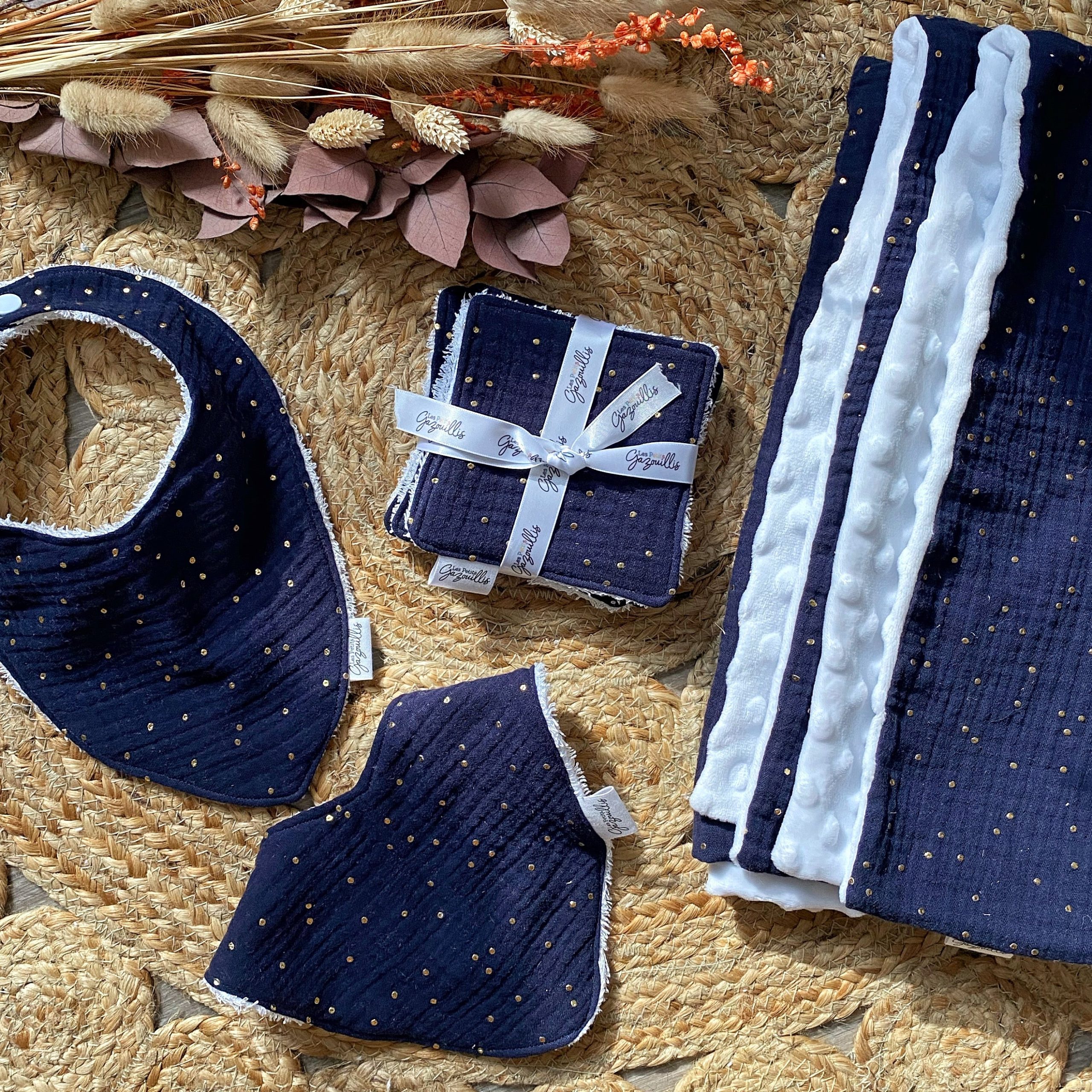 D’autres couleurs sont disponibles. Si vous souhaitez faire un cadeau de naissance, ce maxi kit est fait pour vous ! En optant pour ce kit vous économisez 9,90€. Il contient : Un plaid 70x90CM* ou 90x110CM* Deux bavoirs bandana 0-9 mois Un lot de 7 lingettes zéro déchets 10x10CM* Composition : Pour le plaid : […]