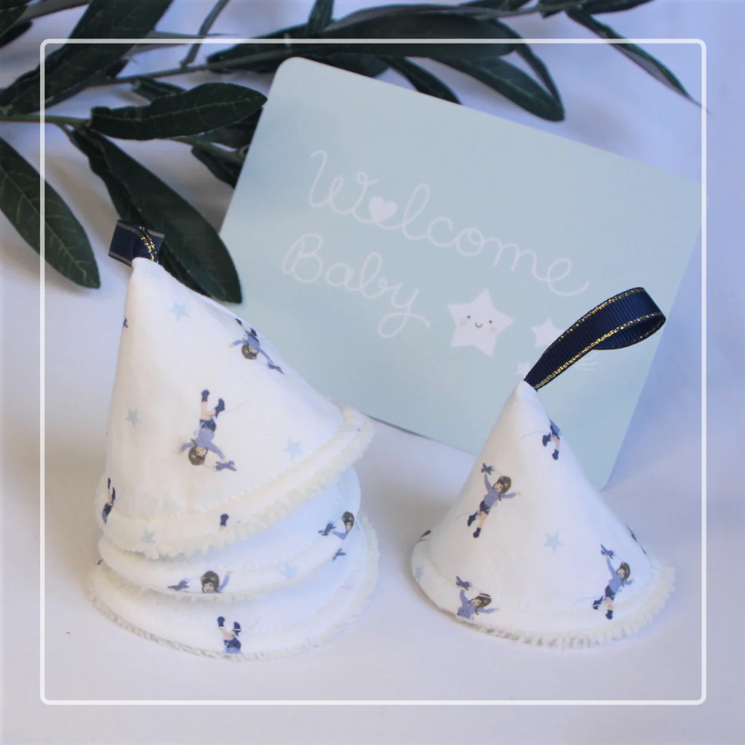 Ces 4 tipis à pipi servent à éviter d’être aspergés par les pipis intempestifs de nos petits hommes…. On le pose dessus pendant le change… et on n’est plus arrosés! L’envers est en éponge de bambou écru toute douce, quel tissu à motif allez-vous choisir?