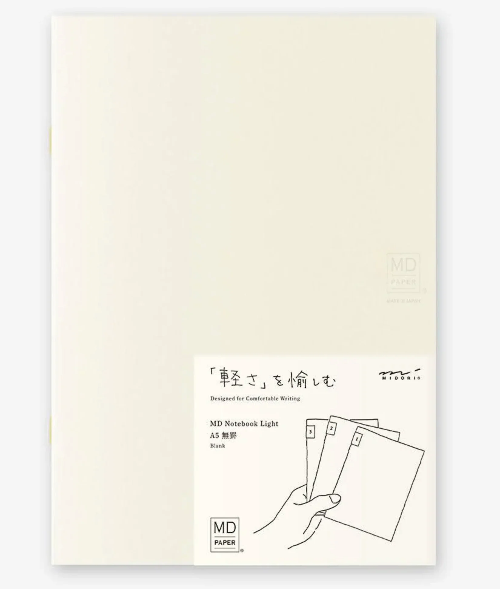 Le carnet Midori MD Light au format A5 fait partie des produits papier Midori relancés en 2017.