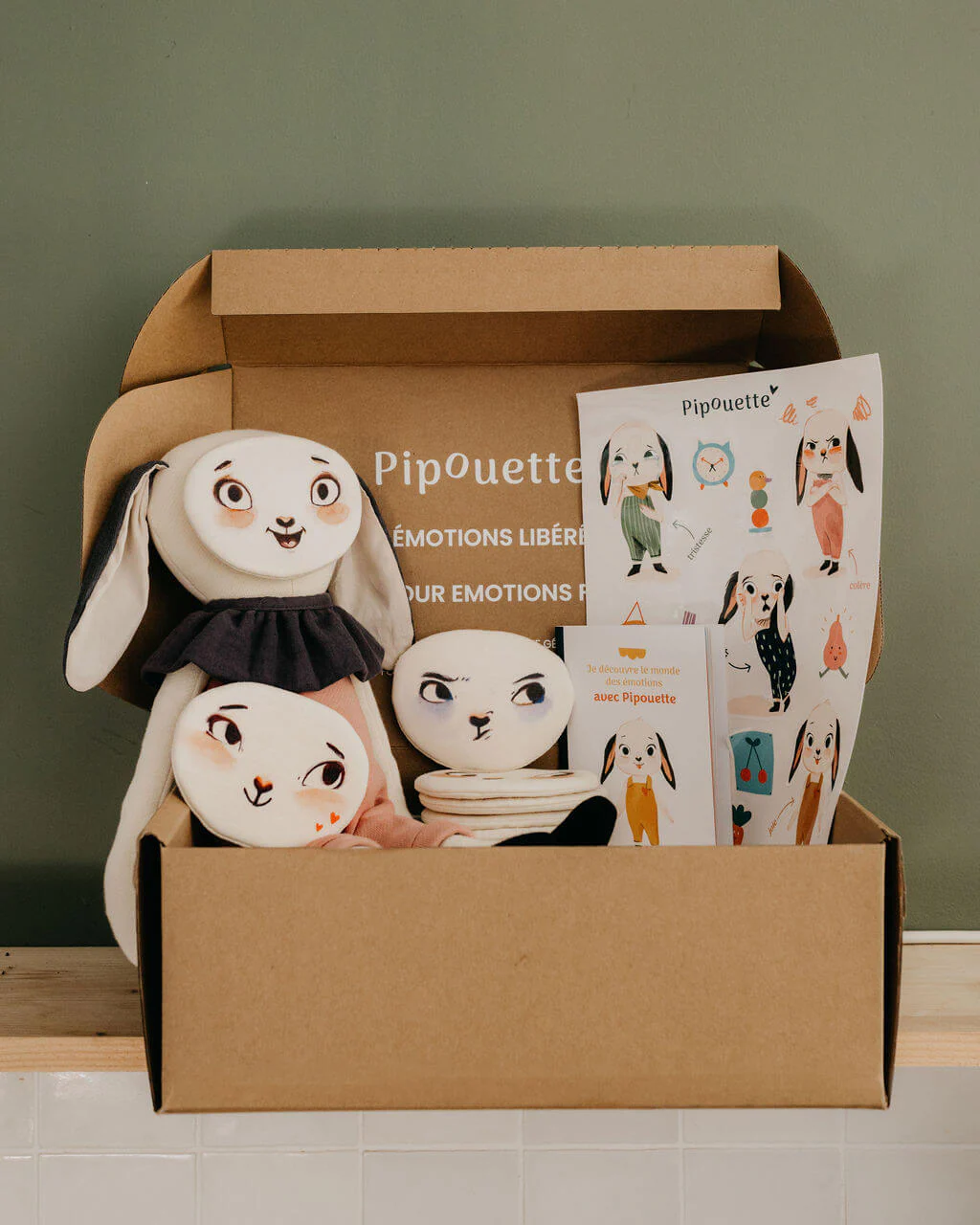 Pipouette, c’est un compagnon de vie pour découvrir, vivre et exprimer en confiance ses émotions. Un outil pédagogique sous forme de doudou lapin qui est un cadeau aussi joli qu’utile pour bien grandir.
