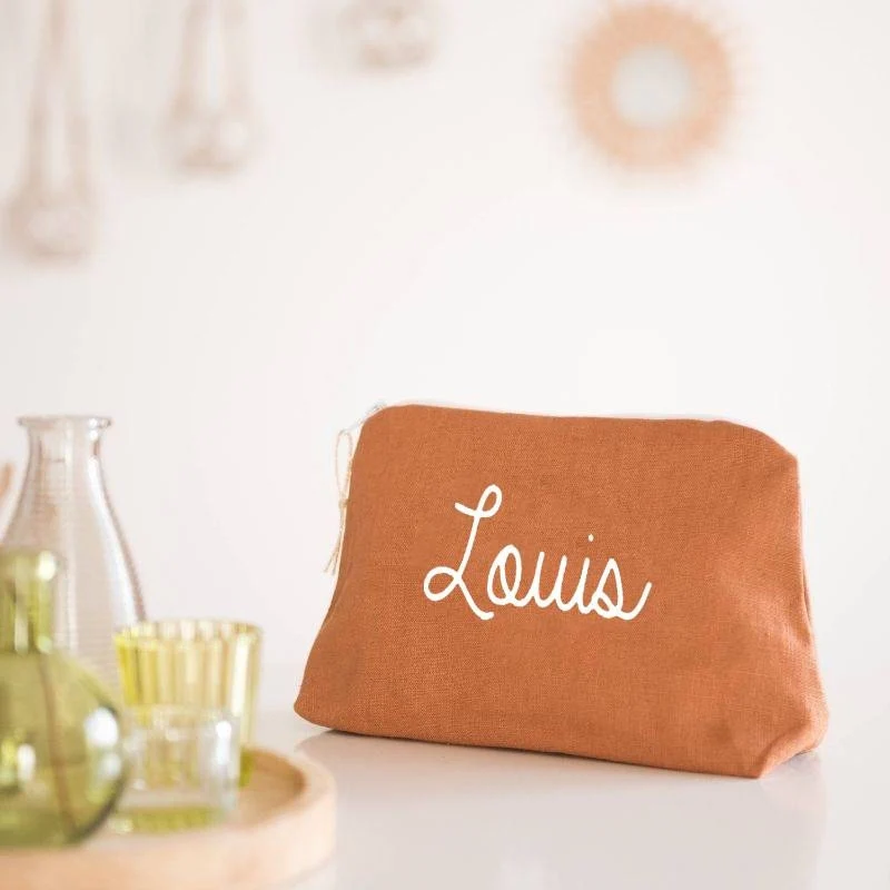 Une jolie trousse de toilette en lin personnalisable au prénom de votre choix.