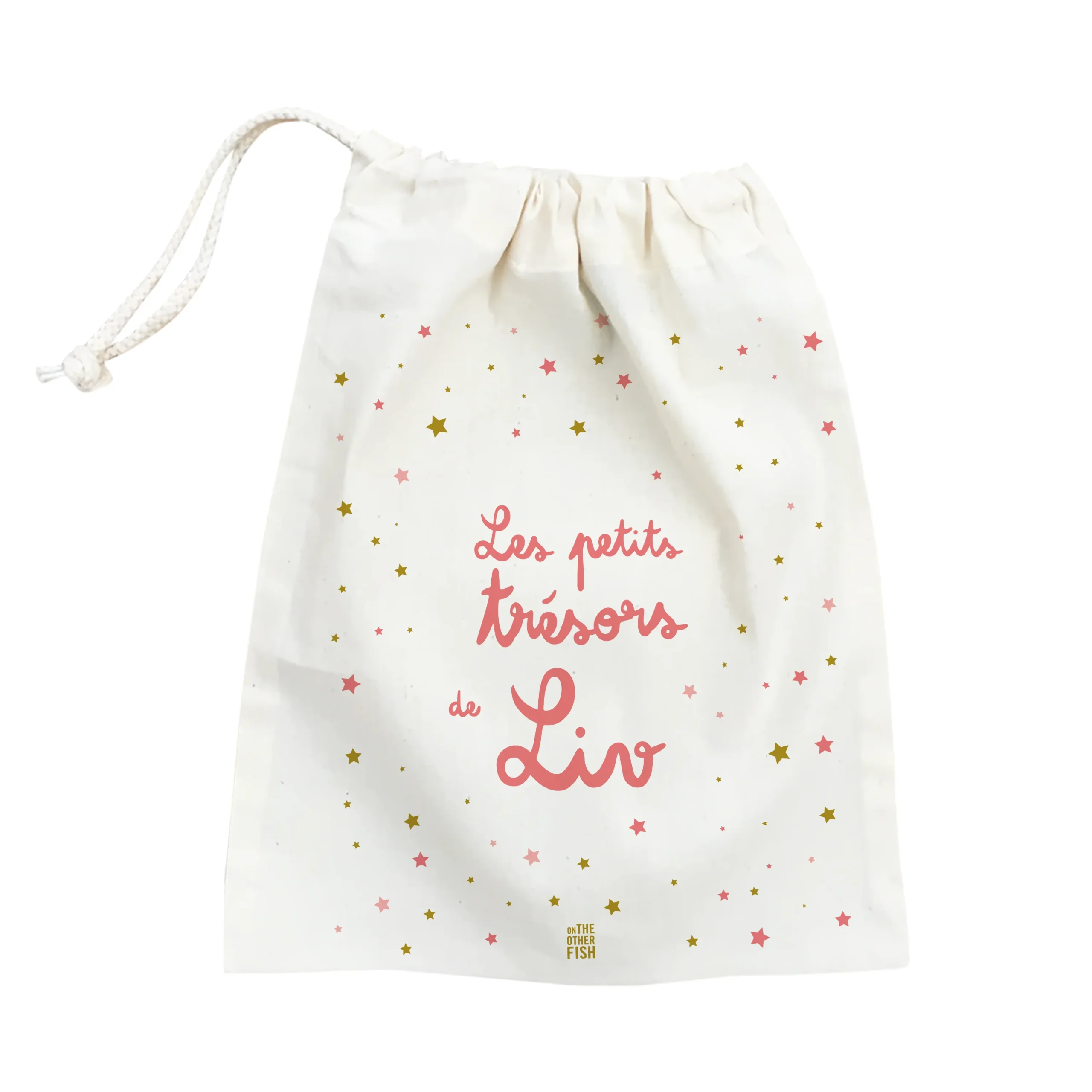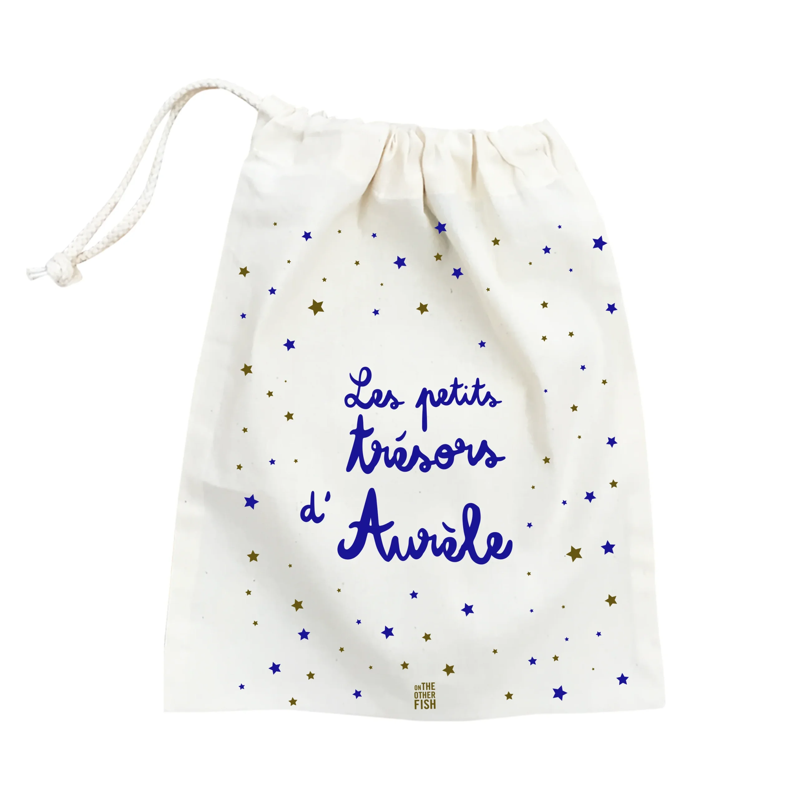 Une petite pochette personnalisée au prénom sur le thème des étoiles.