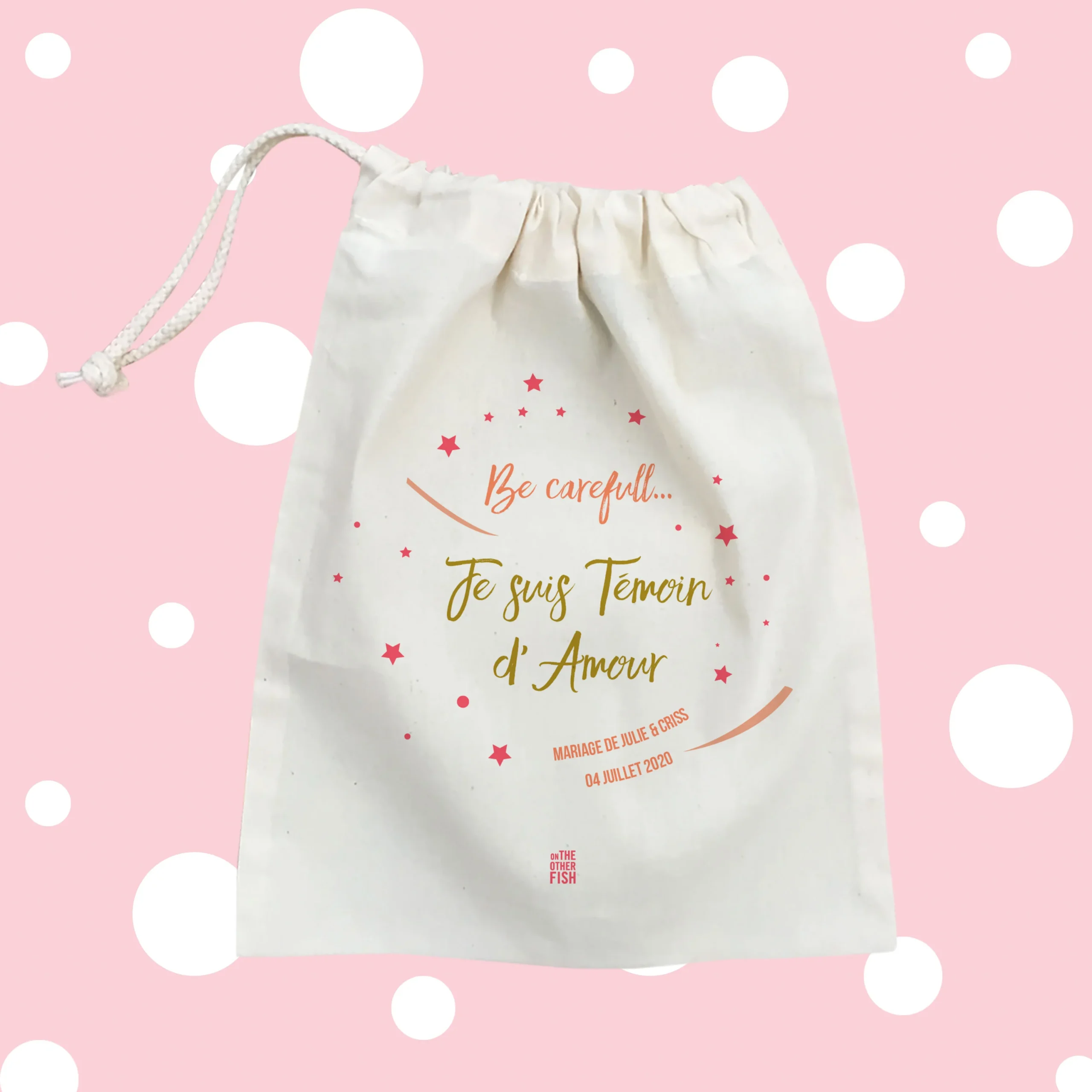 Pour faire une demande de témoin, tout le monde cherche l’originalité pour marquer les esprits et qu’on se souvienne de ce grand jour, nous avons une idée à vous soumettre ! Et si vous offriez une petite pochette « Be careful… Je suis Témoin d’Amour » ? Rien de plus original qu’une pochette fourre-tout 100% coton personnalisée aux noms des mariés et à la date du mariage !