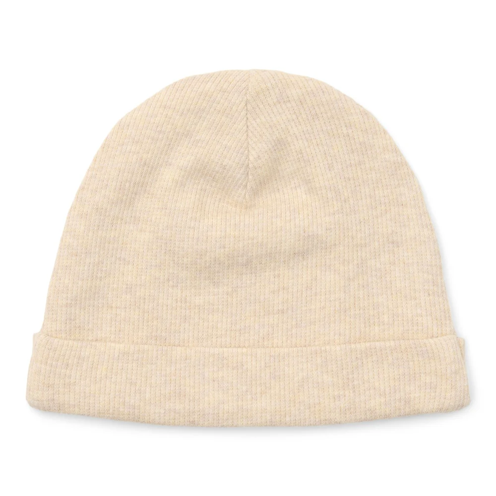 Chapeau de bébé en coton doux en rib 2×2 avec élasthanne pour un confort supplémentaire.