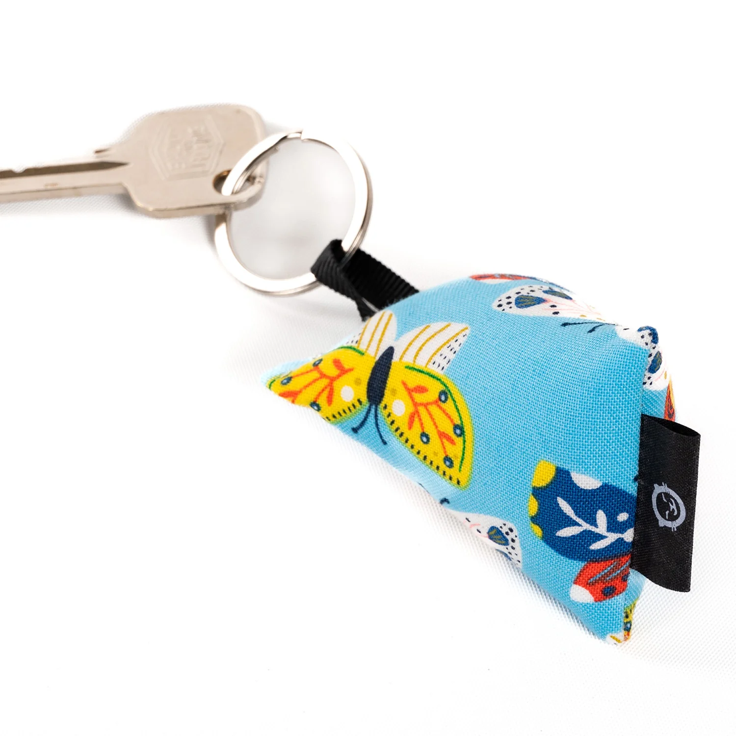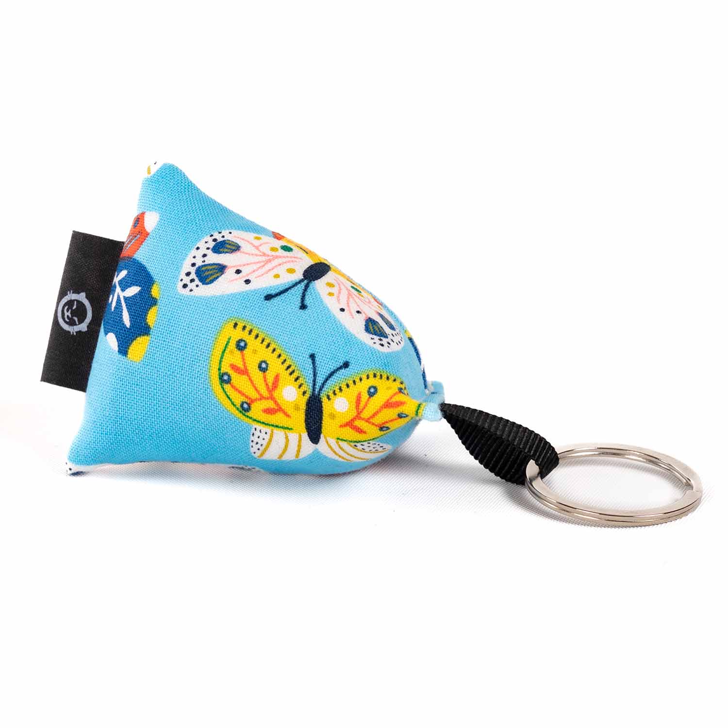 Ce porte-clé Made In France est l’accessoire parfait pour compléter votre collection de coussins Petits Cadors ! Avec son motif de papillons colorés, il plaira a coup sûr.