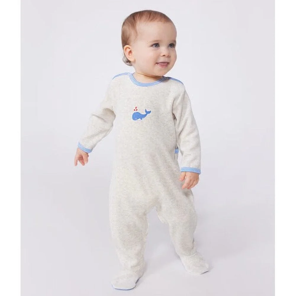 Pyjama en velours pour bébé Petit Bateau avec fermeture au dos – Baleine