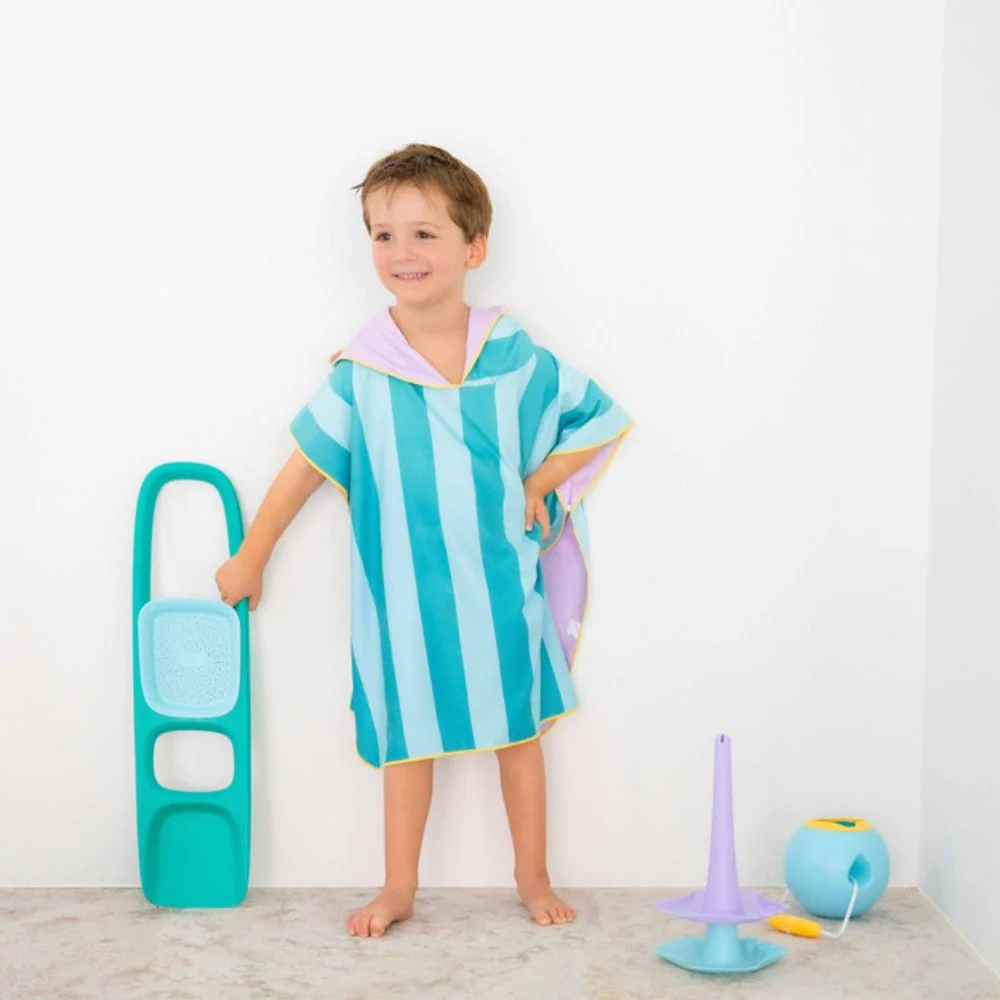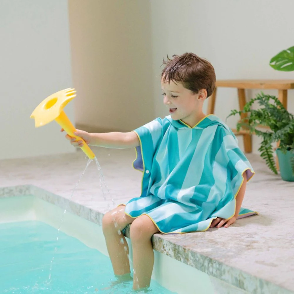 Sur ce poncho de Quut, tout le monde peut tomber amoureux ! Doux, confortable et garde votre petit bien au chaud après les jeux d’eau.