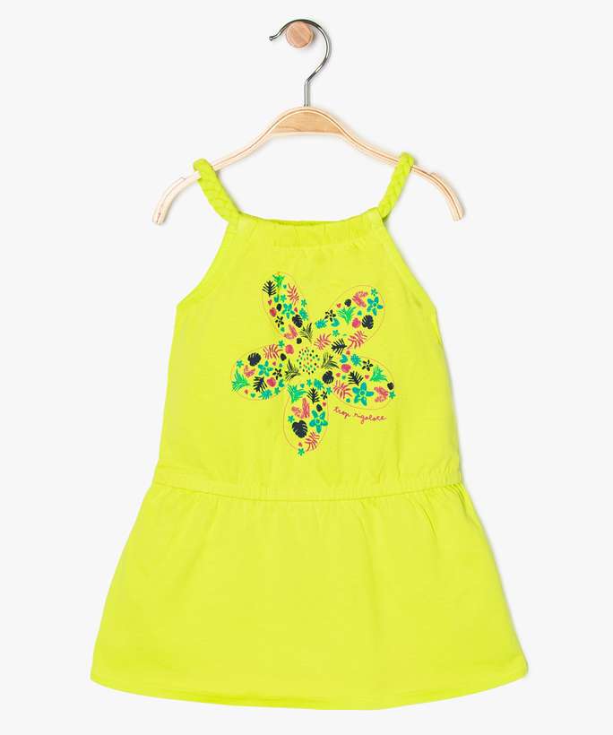MARQUE : GÉMO cette robe en maille est un indispensable de la valise de vacances de bébé ! On aime sa matière souple et agréable à porter au coeur de l’été. Robe en maille avec motifs ou rayures pour bébé fille. Ceinture élastiquée. 100%coton