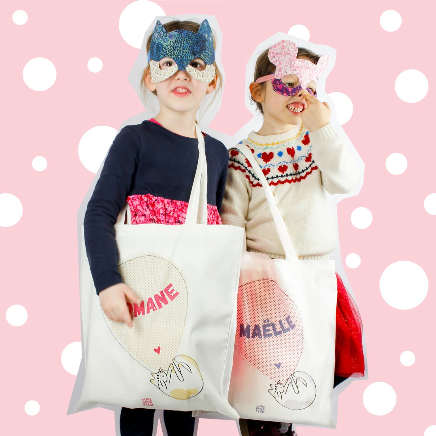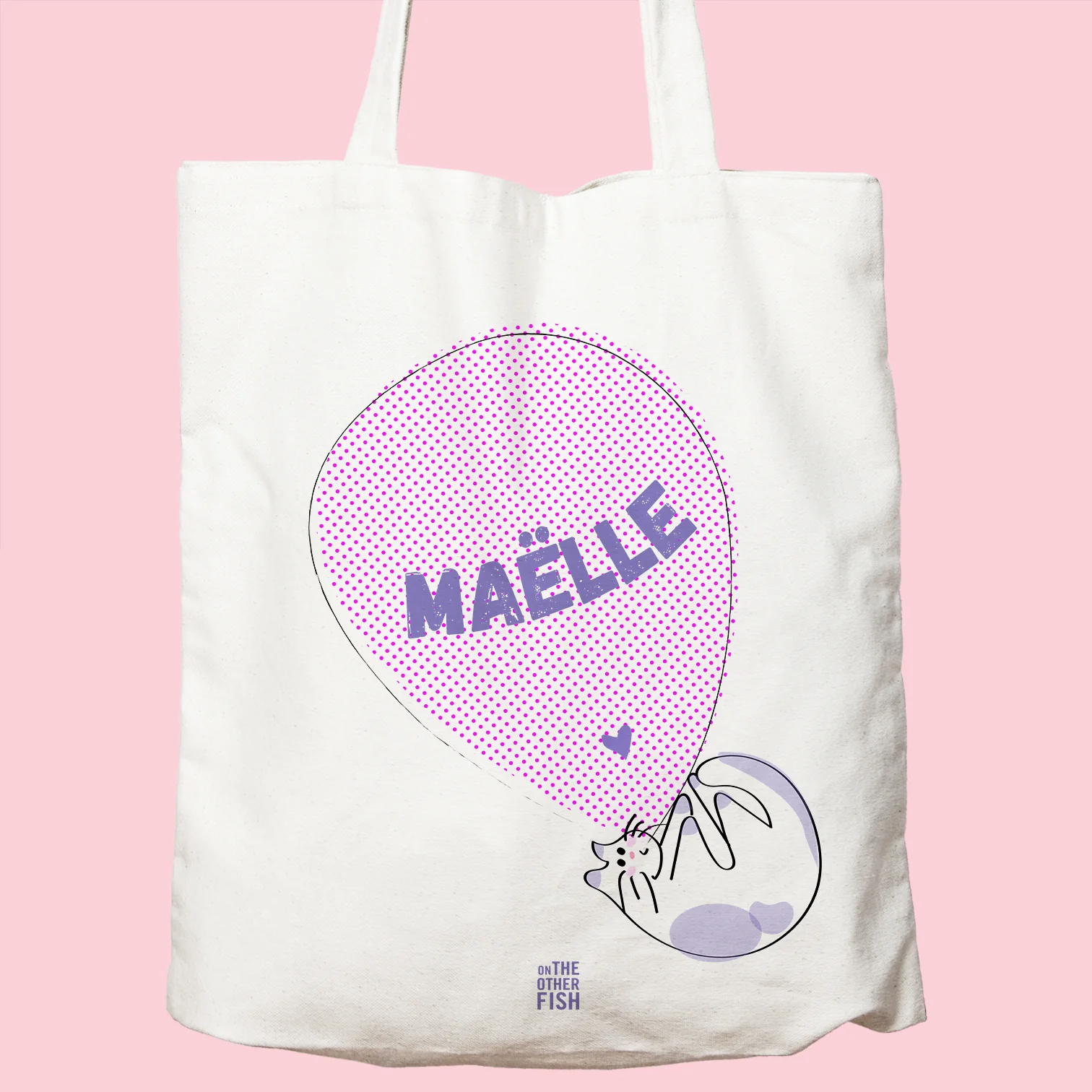 Un sac d’enfant personnalisé, ou un sac à langer pour un cadeau de naissance, ce chat volant fera des bulles avec son prénom !