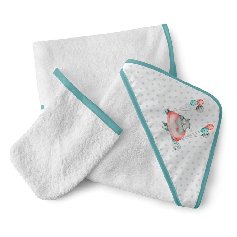 Sortie de bain avec cap 75cm×75cm blanc/vert et gant assorti,Naf Naf