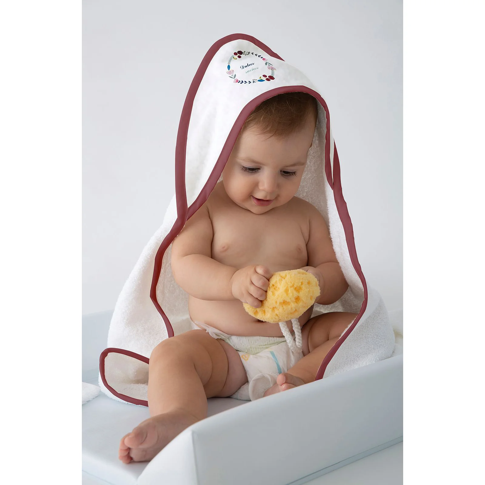 MARQUE : NAF NAF Sortie de bain avec gant, en tissu Ă©ponge absorbant et 100% coton. ImprimĂ© numĂ©rique sur la capuche, avec une grande variĂ©tĂ© de motifs. Dimensions de 75×75 cm.Coloris Blanc . Composition: 100 % coton Conseils d’entretien: Lavage en machine max. 30ÂşC