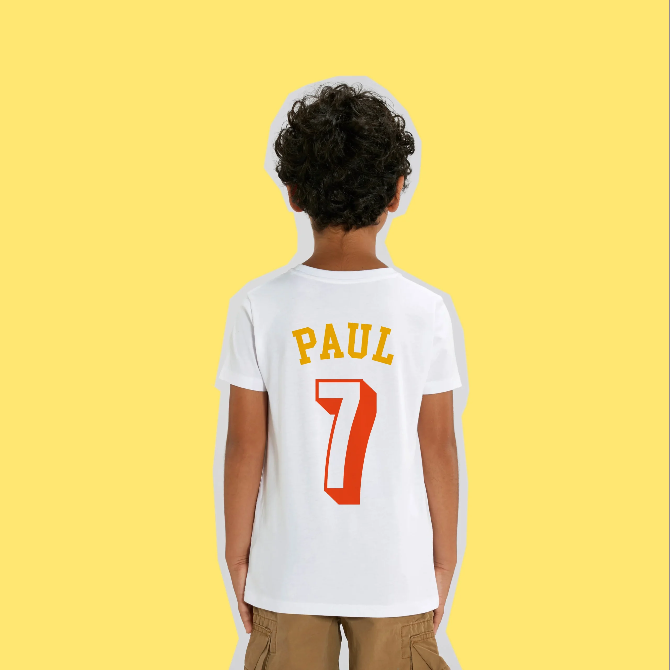 T-shirt d’anniversaire enfant à personnaliser – Jaune et Rouge