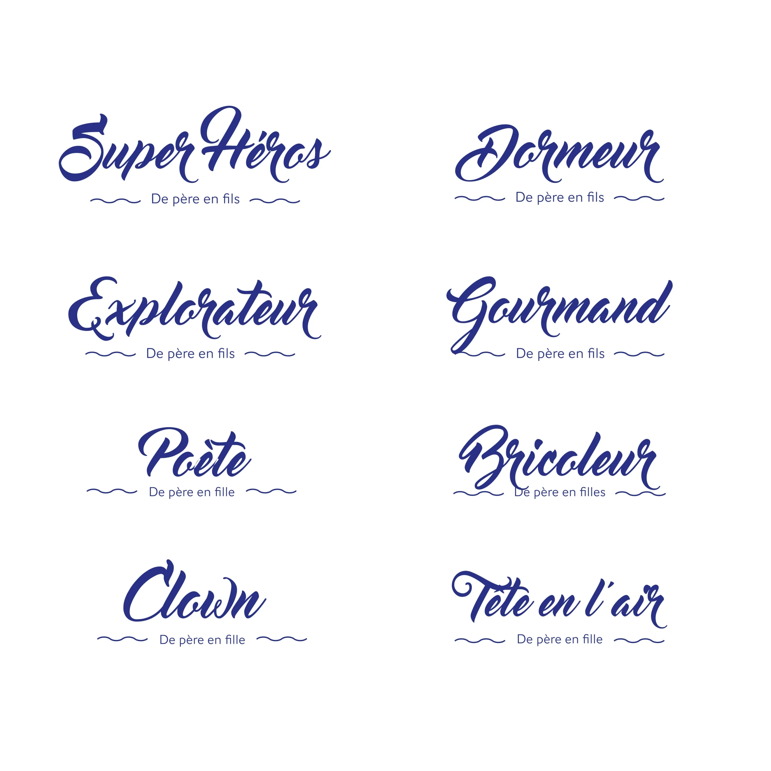 Il est aussi maladroit que son papa ? Il est aussi globe trotteur que sa fille ? Il est fier d’avoir des filles / des fils aussi gourmandes que lui ? Choisissez votre adjectif et votre genre et il sera comblé ! Matière 100% coton biologique Entretien Lavage en machine à 30° Thèmes Papa